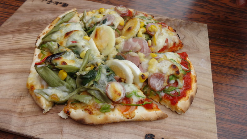 今日の朝ごはんは,石窯で焼いたピザ。