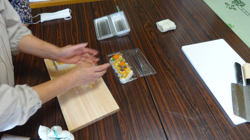 お昼ごはんは,自分達で作った「こけら寿司」。
