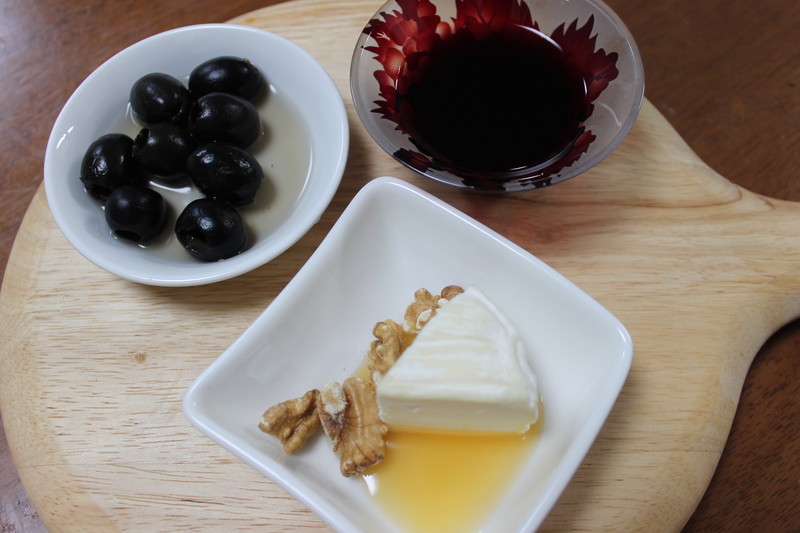 カマンベールっぽいチーズ&くるみ。それに,はちみつみたいなトロリとしたジャム。すごく美味しい。