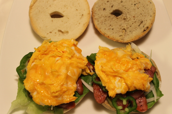 高松に持って行く荷物を減らしたかったので,お弁当箱を使わないお弁当ということで,ベーグルサンドにすることに。