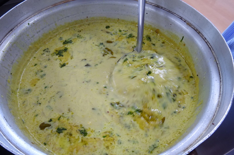サブジは,材料は,じゃがいも,なす,いんげんと同じものを使って,ベンガル風(パンチフォロンを効かせたもの)と,北インド風のサブジ。スパイス使いで,東と北の違いを。