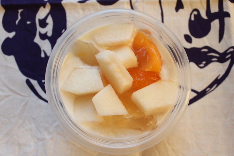今日は,午前中いっぱいの長い会議があるので,その前のおやつ用に,豆乳ヨーグルト&フルーツゼリー&ル・レクチエ,持っていきます。