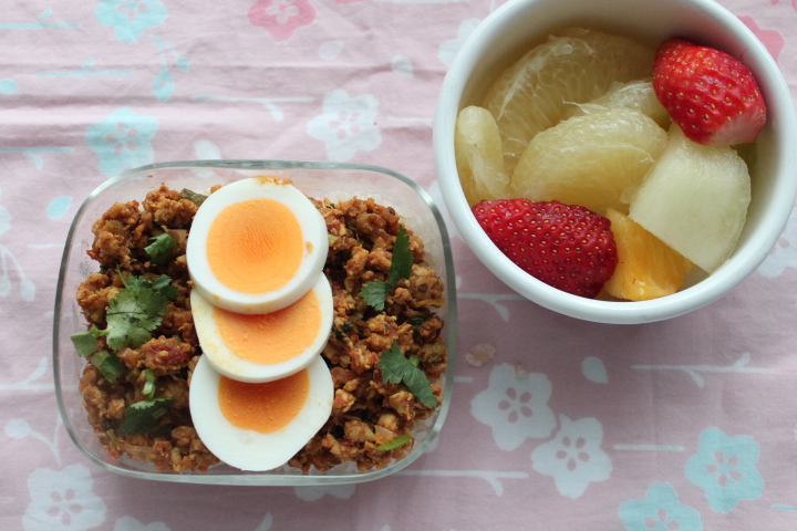 マッサージ前に,軽く夕食を済ませておこうと思って,今朝,夜食用のミニ弁当を作って持参しました。