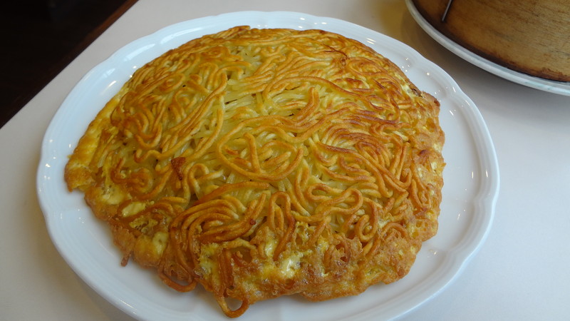 一見,あまり美味しそうに見えないのですが,この焼き目のついた麺の殻をやぶると,中から,海鮮のあんと,ちょっとやわらかい麺が出てきます。