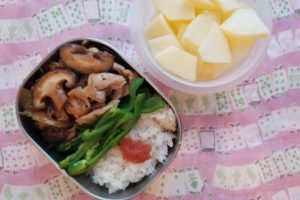 今日のお弁当は,炊飯器で炊いたパエリアです。