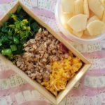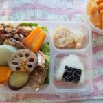 今朝は、それをお弁当箱につめて、なんとかお弁当できました。感謝、感謝。