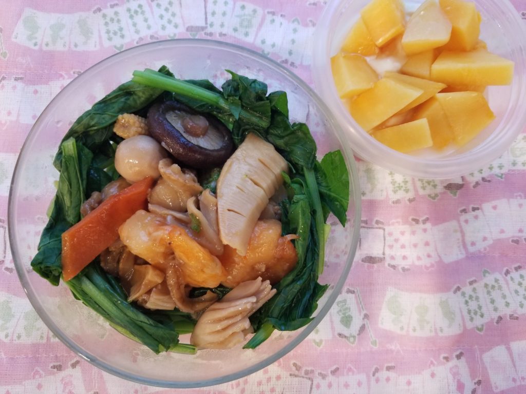 今日はデパ地下のそうざいをレンチンしてお弁当に。