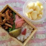 近所の惣菜屋さんのお総菜をだんなさんが買っておいてくれたので、お弁当に。