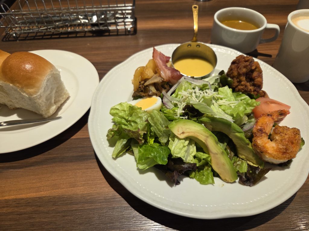 ヘルシーにしようと思ってサラダランチにしたのですが、鶏のからあげやら、ベーコンやら、ハイカロリーなものが入ってました。