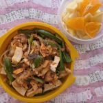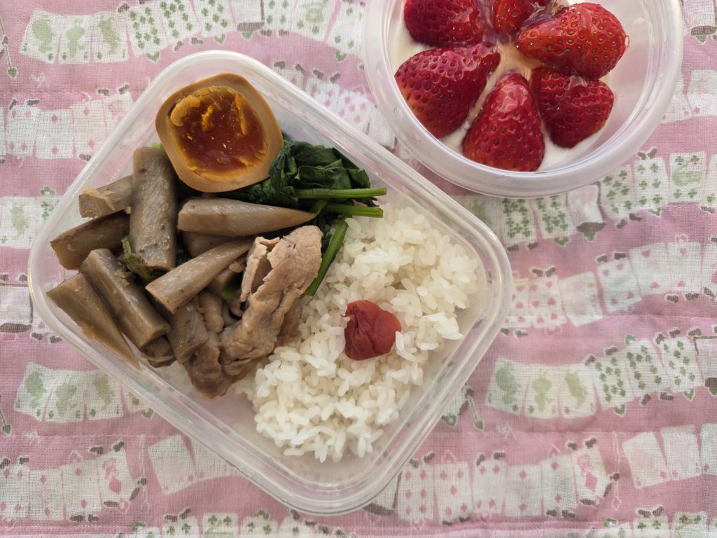 今日は、その具材の残りを使って、だんなさんが煮物にしてくれたので、それを持ってきます。