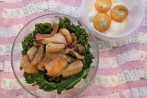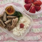 今週お弁当を作るのは、たぶん月、火だけなので、あり合わせの食材で。