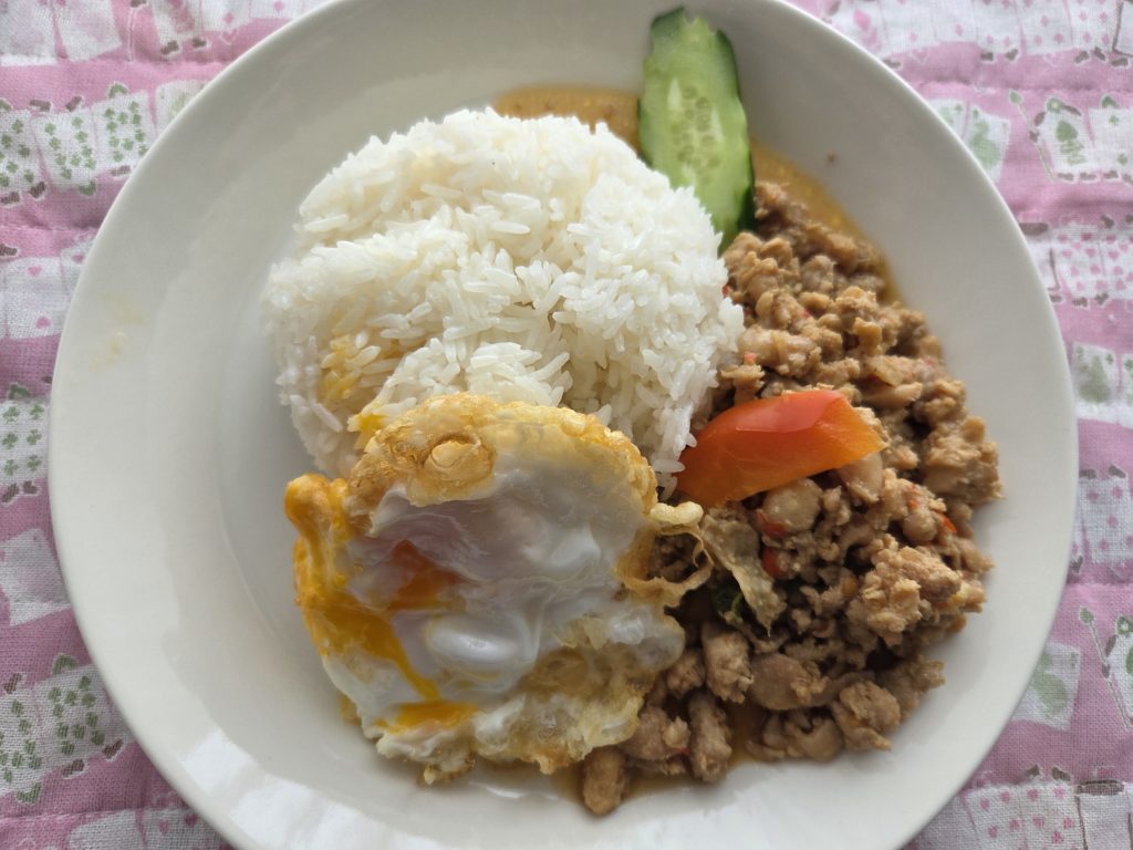 途中、タイ料理屋さんでガパオ弁当を買いました。