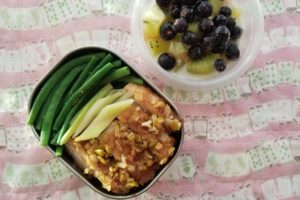ごま和えも,豚肉のしょうが焼きも,お弁当箱に入らないかな,と思いながら作っていたのですが,みごとに収まりました。