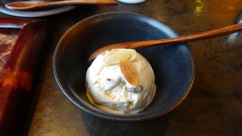その食べる姿に鬼気迫るものがあったのか,お店のお姉さんから,ナッツを載せたアイスクリームも食べてみてほしい,ということで,味見をさせてもらうことになりました。