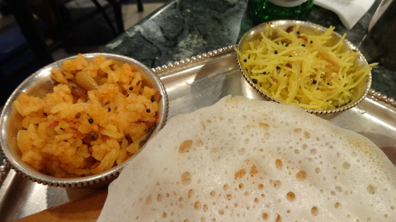 左側のカーランカリフラワー・マサラドーサは,とくに美味しかった。